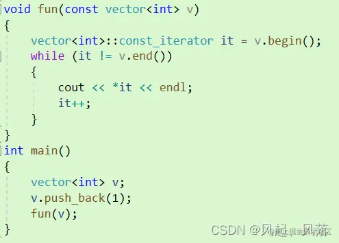 此时v由const修饰,所以需要const_iterator类型的迭代器