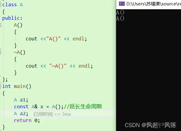 引用会延长匿名对象的生命周期到引用对象域结束,因为后面用xx就是用匿名对象 由于匿名对象具有常性,所以需要用const修饰 此时调用完匿名对象,并不会调用析构函数释放