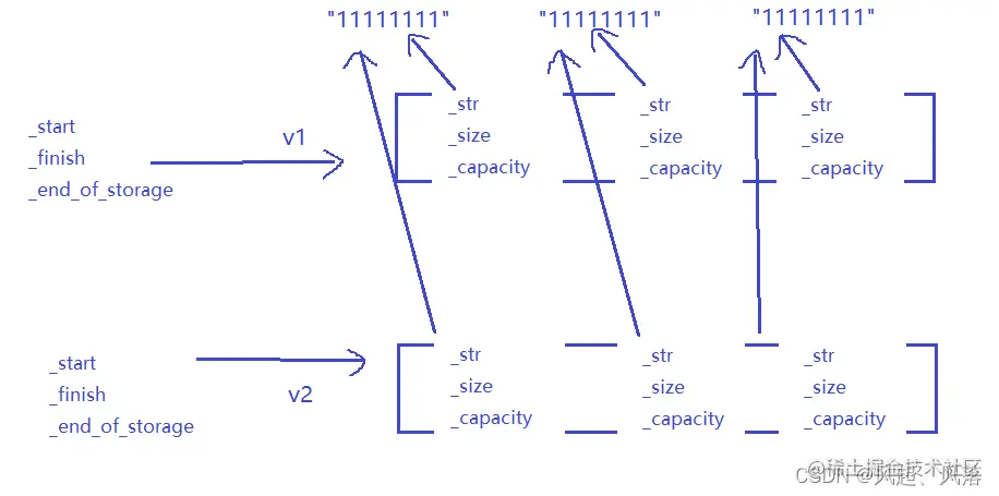 _start[i] = v._start[i];//使用默认的赋值运算符会发生浅拷贝