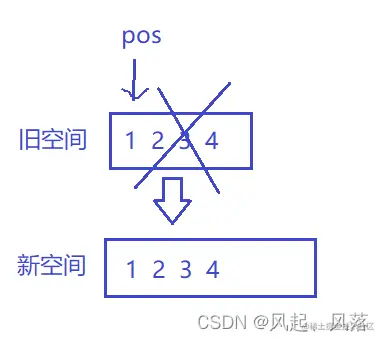 扩容时出现了问题,由于pos指向原来的空间,但是扩容时将释放了旧空间,但是pos依旧指向原来的空间,所以pos变成了野指针 所以需要记录pos在旧空间所处位置,再更新pos在新空间的位置