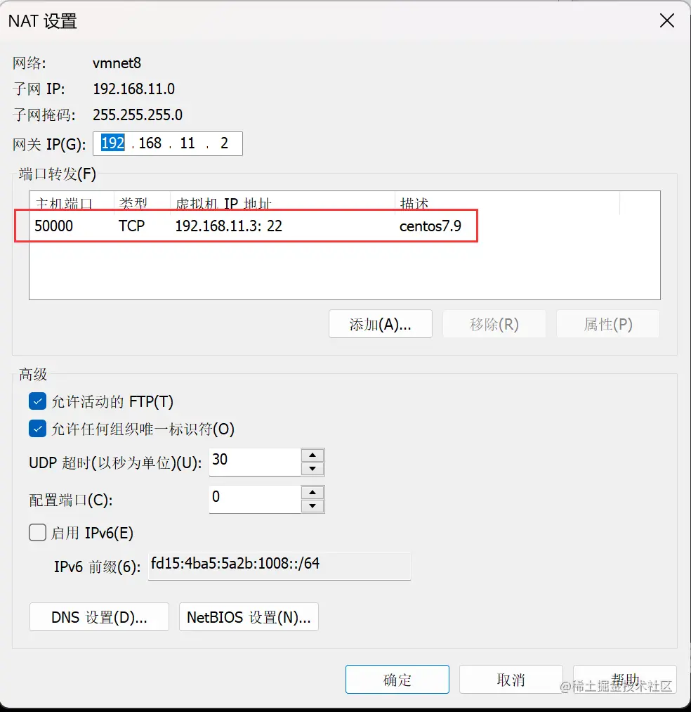 更改NAT设置,设置端口转发: