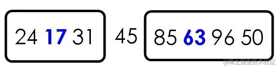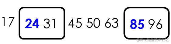 举例来说,现在有一个数据集{85, 24, 63, 45, 17, 31, 96, 50},怎么对其排序呢?