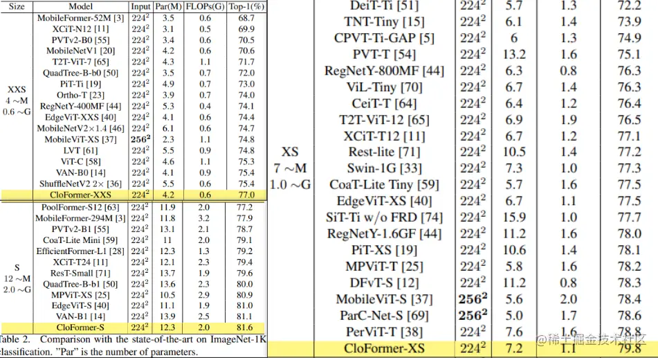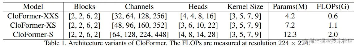 如上图2所示,CloFormer 共包含一个卷积主干和四个 stage,每个 stage you Clo 模块 和 ConvFFN 组合而成的模块堆叠而成 。具体得,首先将输入图像通过卷积主干传递,以获取 token 表示。该主干由四个卷积组成,每个卷积的步长依次为2、2、1和1。接下来,tokens 经历四个 Clo 块和 ConvFFN 阶段,以提取分层特征。最后,再利用全局平均池化和全连接层生成预测结果。可以看出,整个架构非常简洁,支持即插即用!