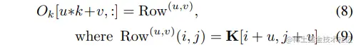 通过这种方式,我们提供了一种新的替代方法来理解 Im2Col 函数,方法是将基于列的视图替换为新颖的基于行的视图。以 为例,如果我们首先将原始特征图向 9 个不同方向移动(如图 3(2.b)),然后将这些特征展平为行,最后将它们连接在列中(如图 3(2.c)),得到的键/值矩阵被证明等价于 局部窗口,可以恢复与原始 Im2Col 函数完全等价的输出(如图 3(1.c))。