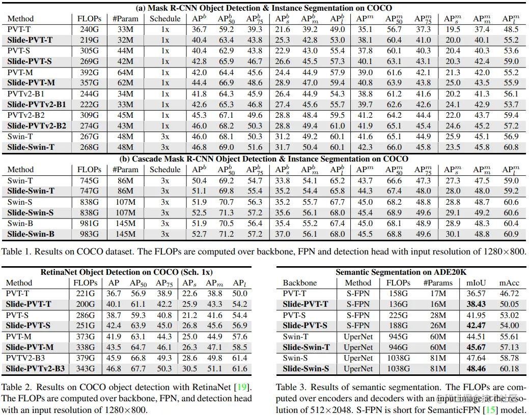 广泛的实验表明,本文所提的滑动注意力模块适用于各种先进的vision transformer模型,并兼容各种硬件设备,在综合基准测试上取得了持续改进的表现。