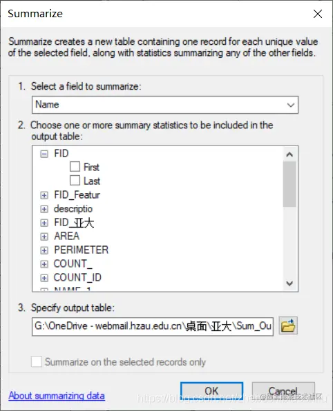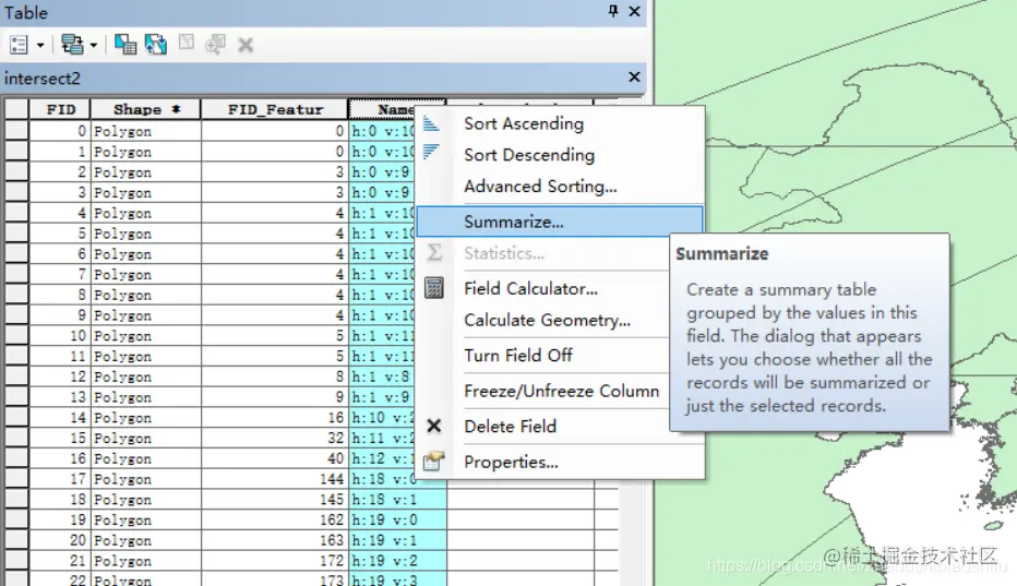 那么如何解决这一问题呢?通过属性表中的“Summarize...”可以实现。选中hv分幅这一列,右键选择“Summarize...”。