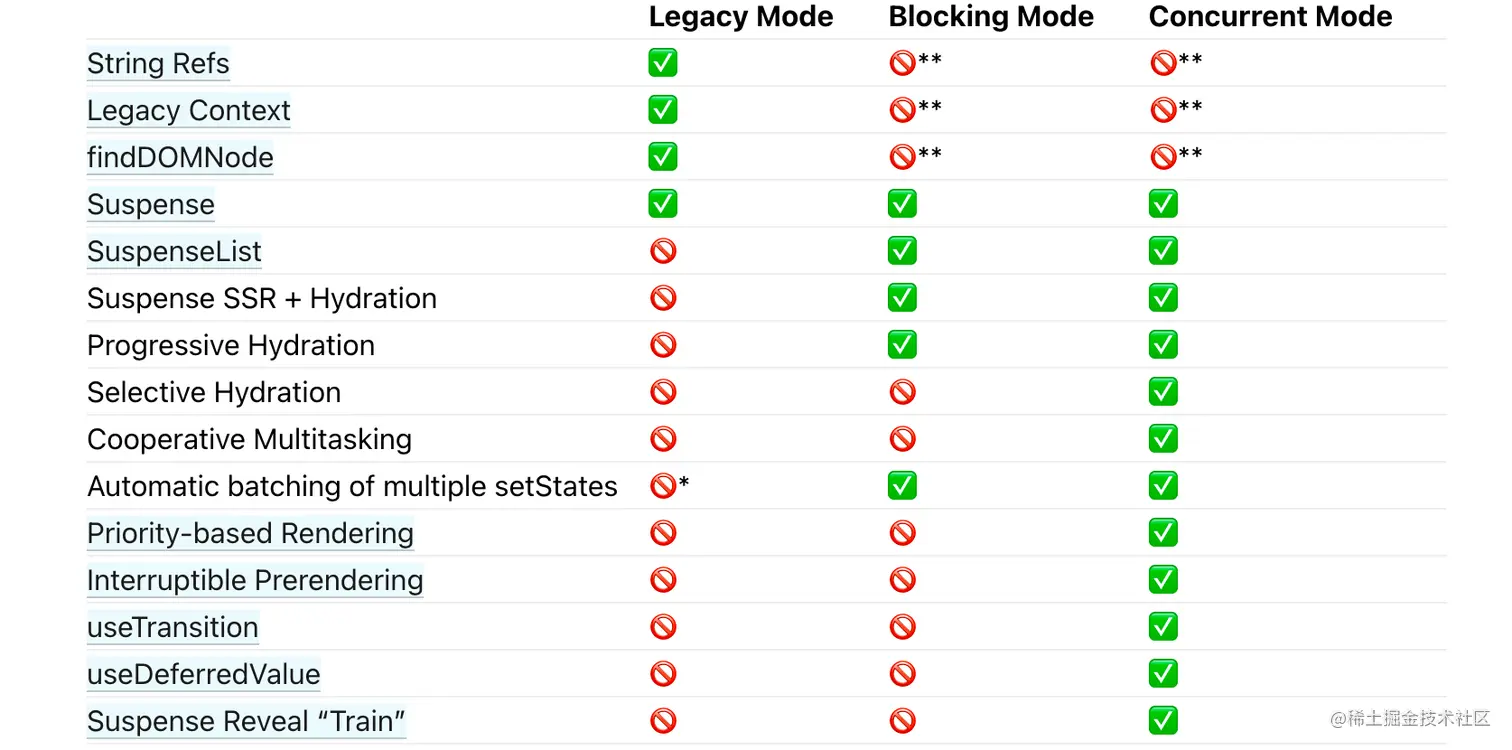 React 18 发布时支持并发。但是,不再有“模式”, 新行为是完全选择加入的,并且仅在您使用新功能时启用。