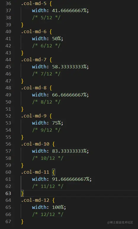 以上方法较为复杂,因此可以预定义一份的大小(使用Bootstrap方法),一般可以将父盒子分为12块(12的公因子比较多 1、2、3、4、6、12),此外不同设备有不同css样式,区分设备是否相同主要是依据宽高,这样的不同的宽高可以分为以下几类: