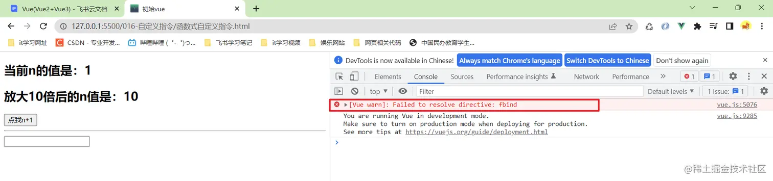 现在我的两个自定义指令都是一个单词的,v-big,v-fbind,如果需要用到多个单词,比如v-binNum,这时候使用驼峰就不好使了