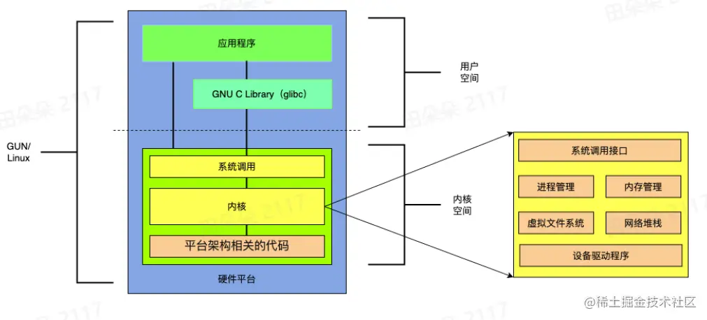 - 用户空间(User Space):应用程序运行的空间