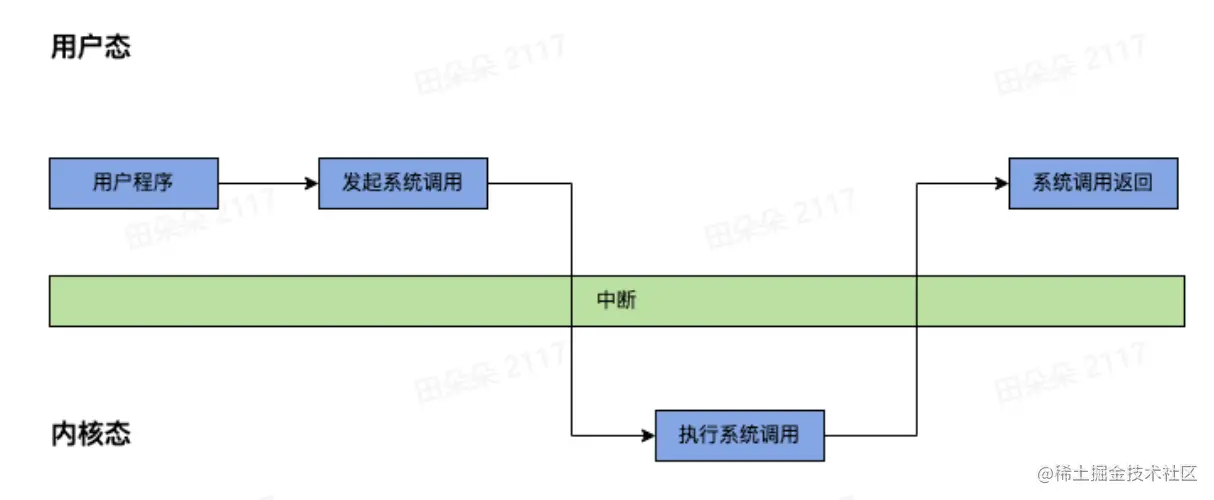 当进程运行在内核空间时就处于内核态,而进程运行在用户空间时则处于用户态。