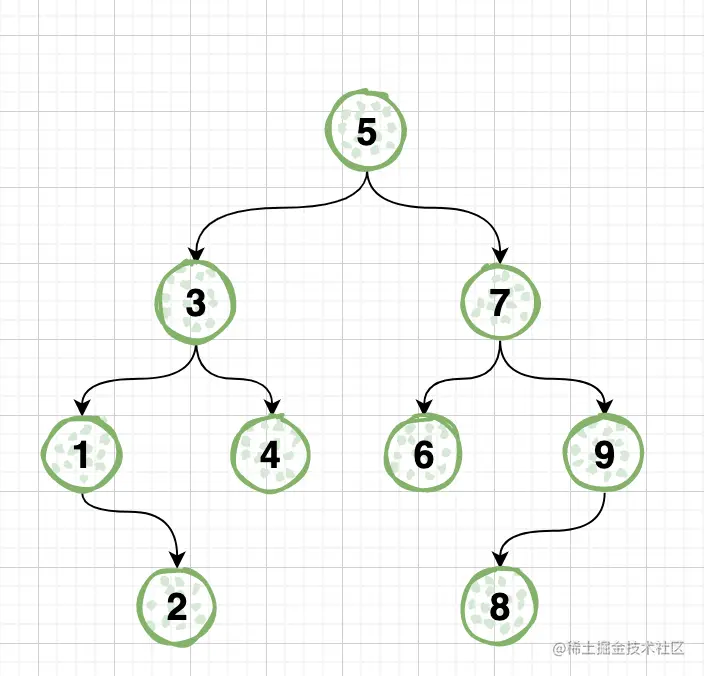 一棵二叉树的任意节点都满足上面三个特性的话,那么这棵二叉树就是搜索二叉树。