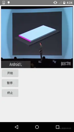 代码很简单,布局有个SurfaceView,然后调用getHolder获得一个SurfaceHolder对象,在这里完成SurfaceView相关的设置,设置了显示的分辨率以及一个Callback接口,重写了SurfaceView创建时,发生变化时,以及销毁时的三个方法!然后按钮控制播放以及暂停而已。