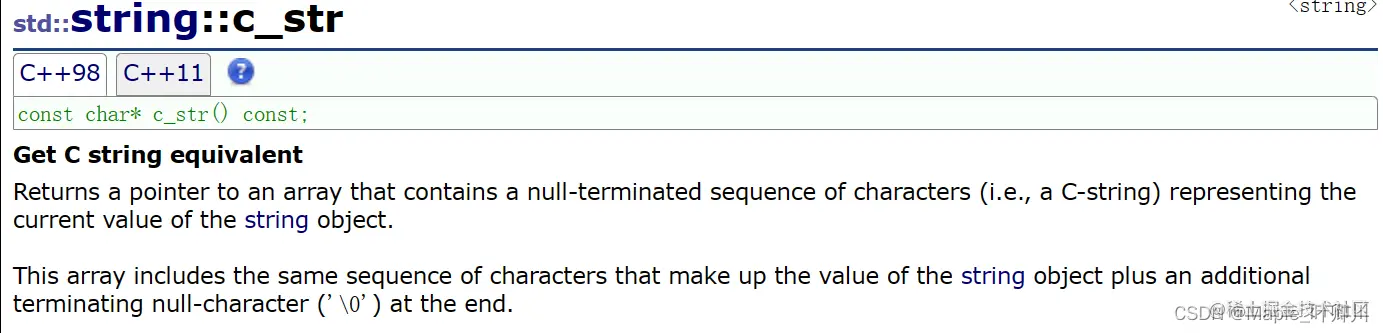 在某些场景中只支持对C形式的字符串,即字符数组进行操作,比如网络传输、fopen,而不支持对C++中的 string 对象进行操作,所以 string 提供了 c_str,用于返回C形式的字符串,即以 ‘\0’ 结尾的字符串