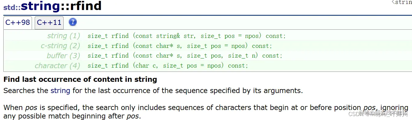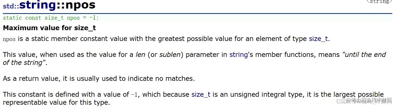 说明一下 npos,npos 是一个无符号数,npos = -1 即代表无符号的最大取值