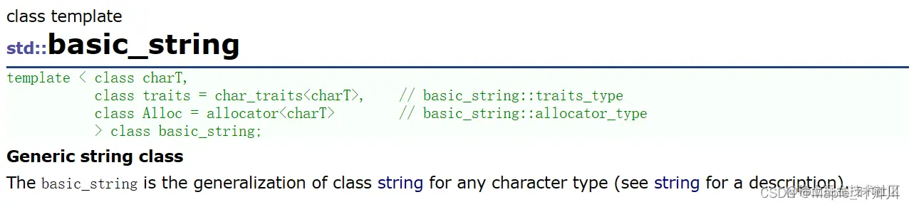 - 4. string类是basic_string模板类的一个实例,它使用char来实例化basic_string模板类,并用char_traits和allocator作为basic_string的默认参数(根于更多的模板信息请参考basic_string)
