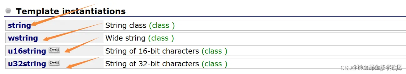 而且还以模板生成几个名字不同 string 类,这些类的主要区别在于编码方式的不同,链接