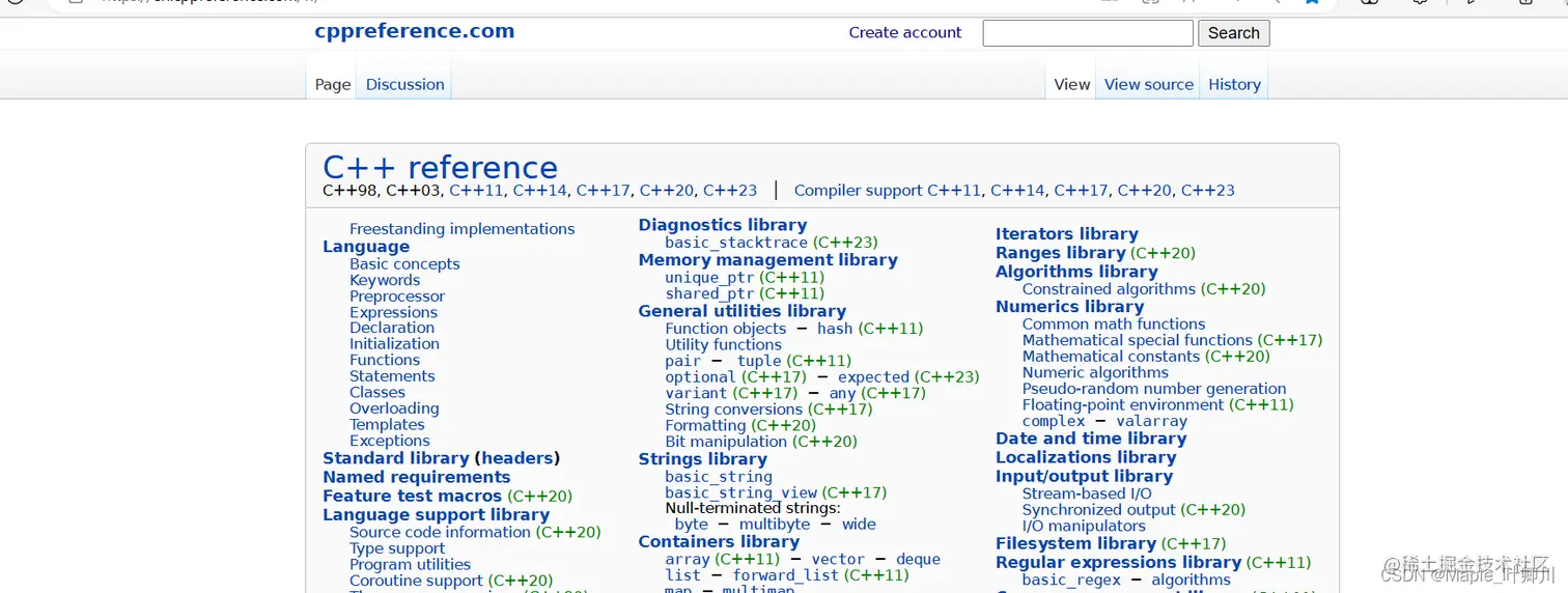 但是官网的排布内容不是很好,推荐使用这个非官网的网站:cplusplus ,右上角切换到旧版体验更好