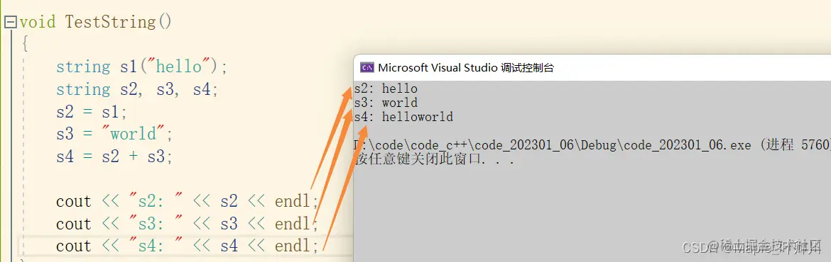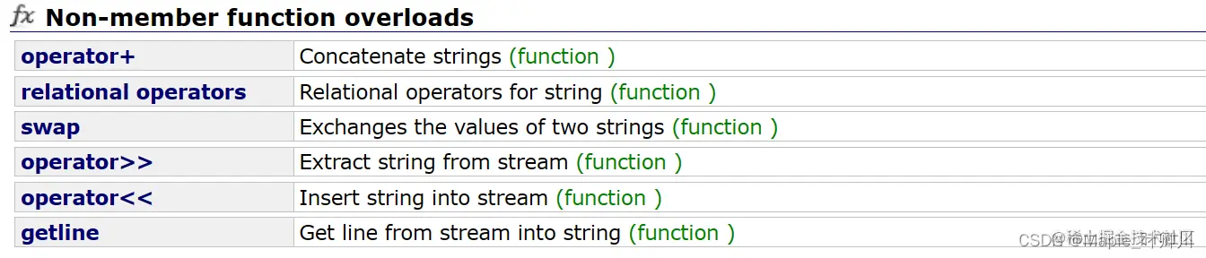 函数 功能说明 operator+ 尽量少用,因为传值返回,导致深拷贝效率低 operator>>(重点) 输入运算符重载 operator<<(重点) 输出运算符重载 getline(重点) 获取一行字符串 relational operators(重点) 大小比较