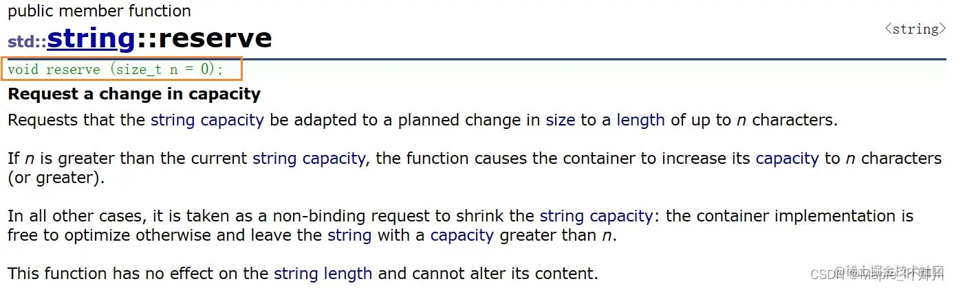 - n 大于原字符串的 capacity,此时 reserve 函数会将 capacity 扩容到 n