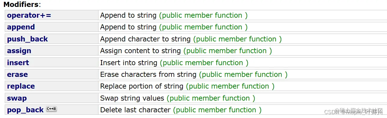 push_back 是在字符串后尾插字符c,append 是在字符串后追加一个字符串,这些都与 += 类似,设计有些多余,不演示了
