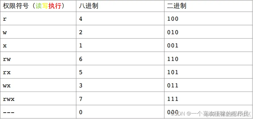 rwx权限的例外一种表示方法: