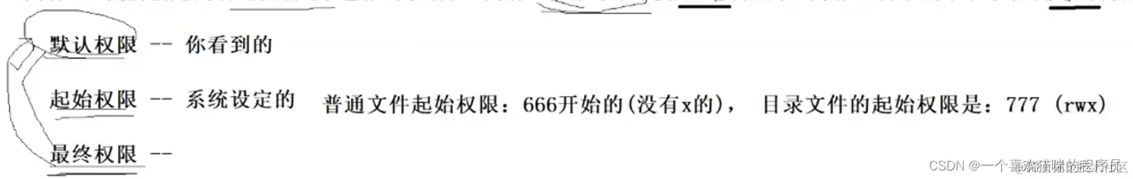 默认权限相当于就是我们用户角度(umask)看到的最终权限