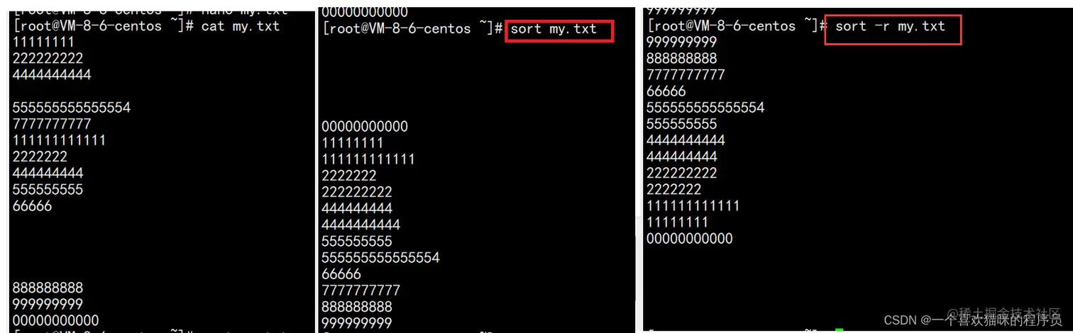 - sort 文件名