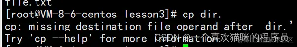 说明: cp指令用于复制文件或目录,如同时指定两个以上的文件或目录,且最后的目的地是一个已经存在的目录,则它会把前面指定的所有文件或目录复制到此目录中。若同时指定多个文件或目录,而最后的目的地并非一个已存在的目录,则会出现错误信息