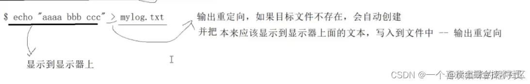 重定向:本来应该显示到显示器上面的文本,写入到文件中--输出重定向