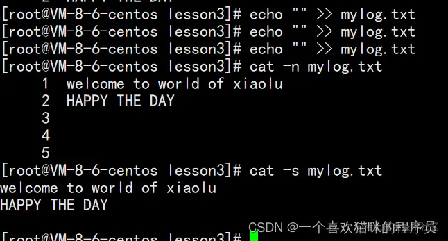 cat带-s就不会显示那么多空行了
