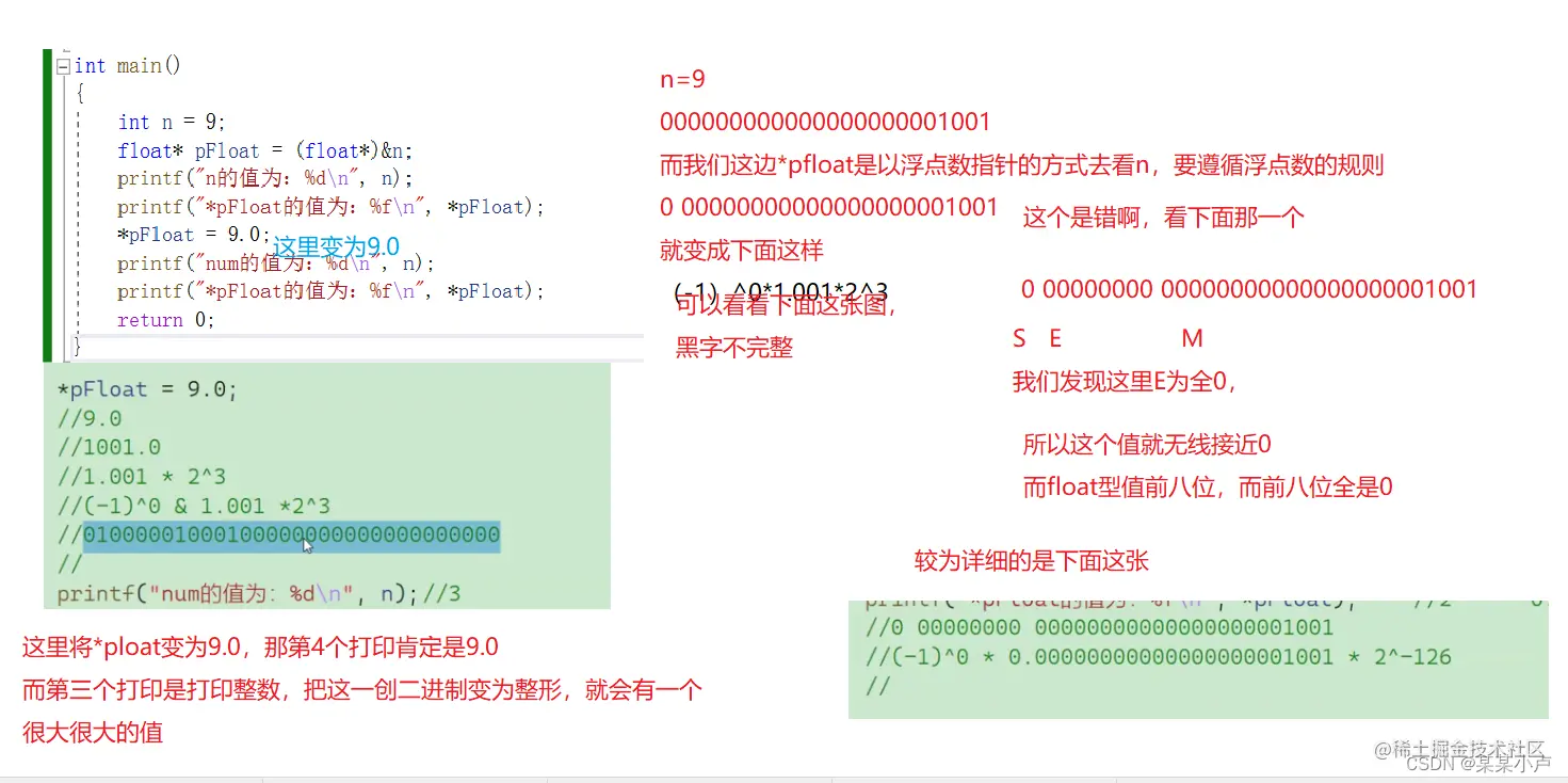 由这个题目可以知道,整数和浮点数的存储方式,置于为什么,后面会有解释。