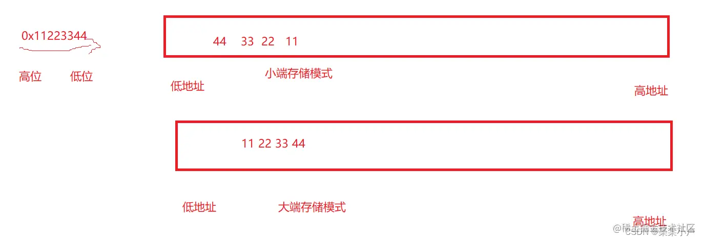 大端(存储)模式,是指数据的低位保存在内存的高地址中,而数据的高位,保存在内存的低地址