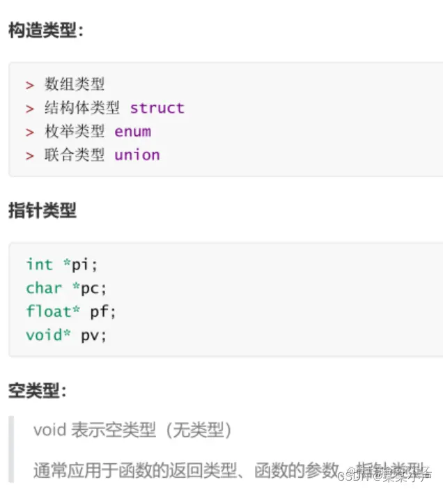 可以分为整形,浮点型,构造类型,以及指针和空类型