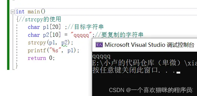 strcpy函数的使用: