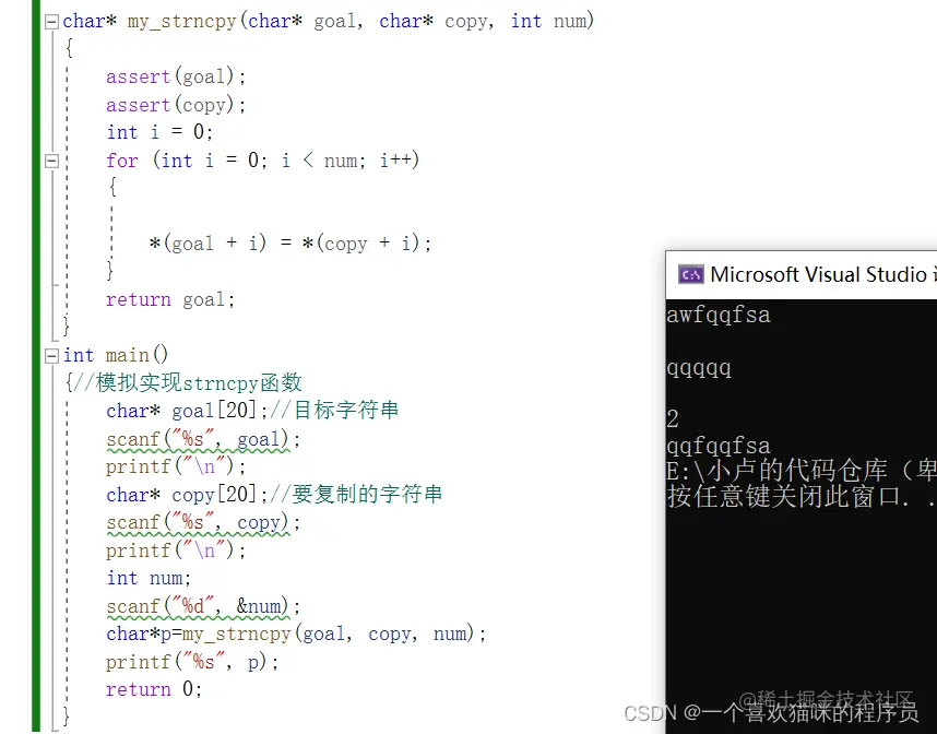 {//模拟实现strncpy函数