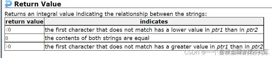 返回值: 为int类型,有三种可能,一种为0,一种为大于0的数,一种为小于0的数。