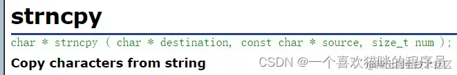 - 会将要复制的字符串中的 '\0' 拷贝到目标字符串。