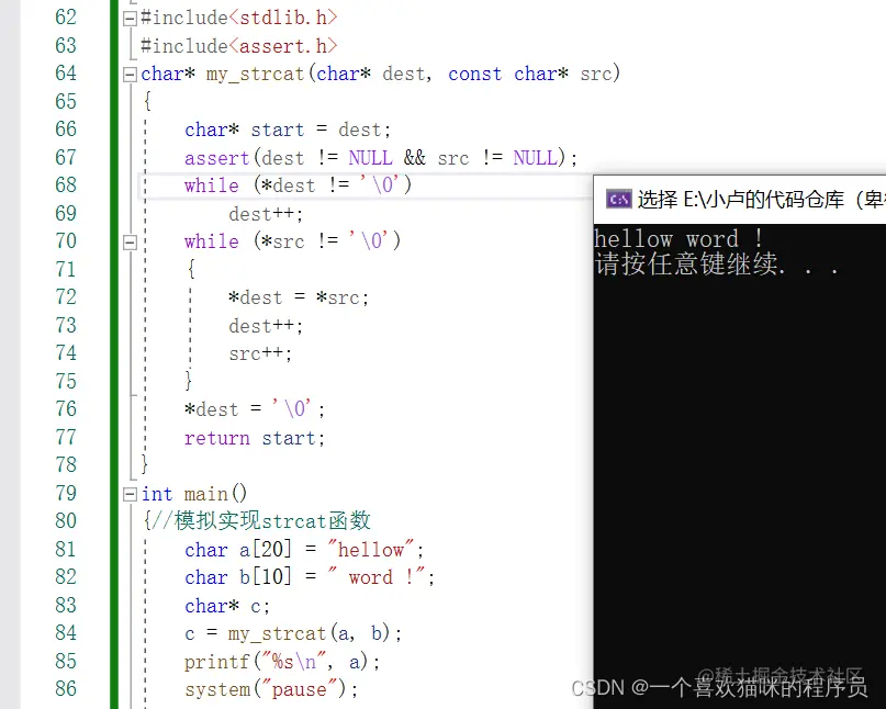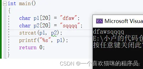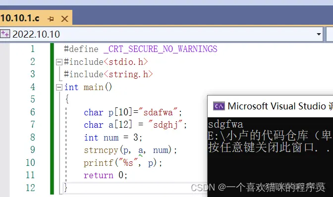 用处:这个也是strcat函数的加强版,可以控制想要的个数来追加字符串。