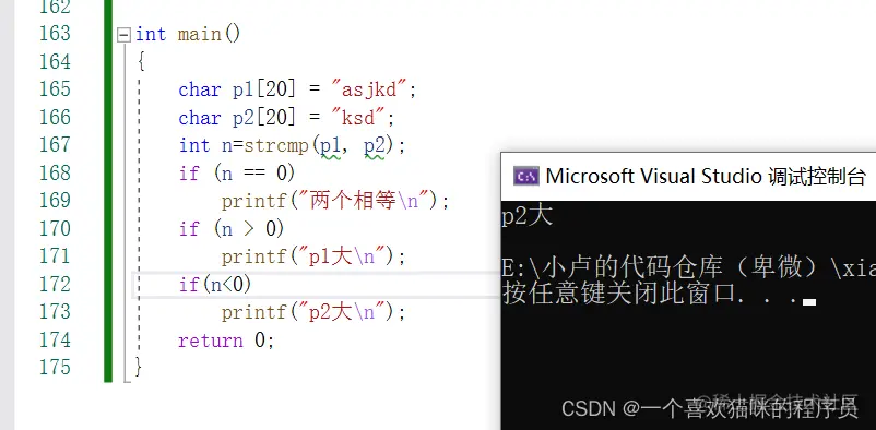 strncmp的注意点与strcmp函数一样都是为返回值,并且一样的。