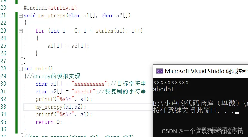 strcpy的模拟实现: