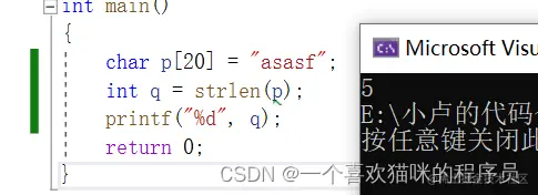 返回值:为size_t,为 字符串的长度。