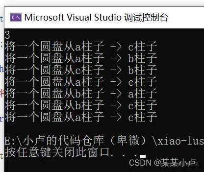 这里我给大家总结一下规则:大概就是一开始一共有n个盘子在A杆上,它是从大到小排列的,上面小下面大,我们一次只能移动一个盘子,而只能拿上面的盘子,而且在拿的过程中,ABC三个杆得保持每个杆上面小下面大,最后我们要让所有的盘子在C杆上,并且上面小下面大。