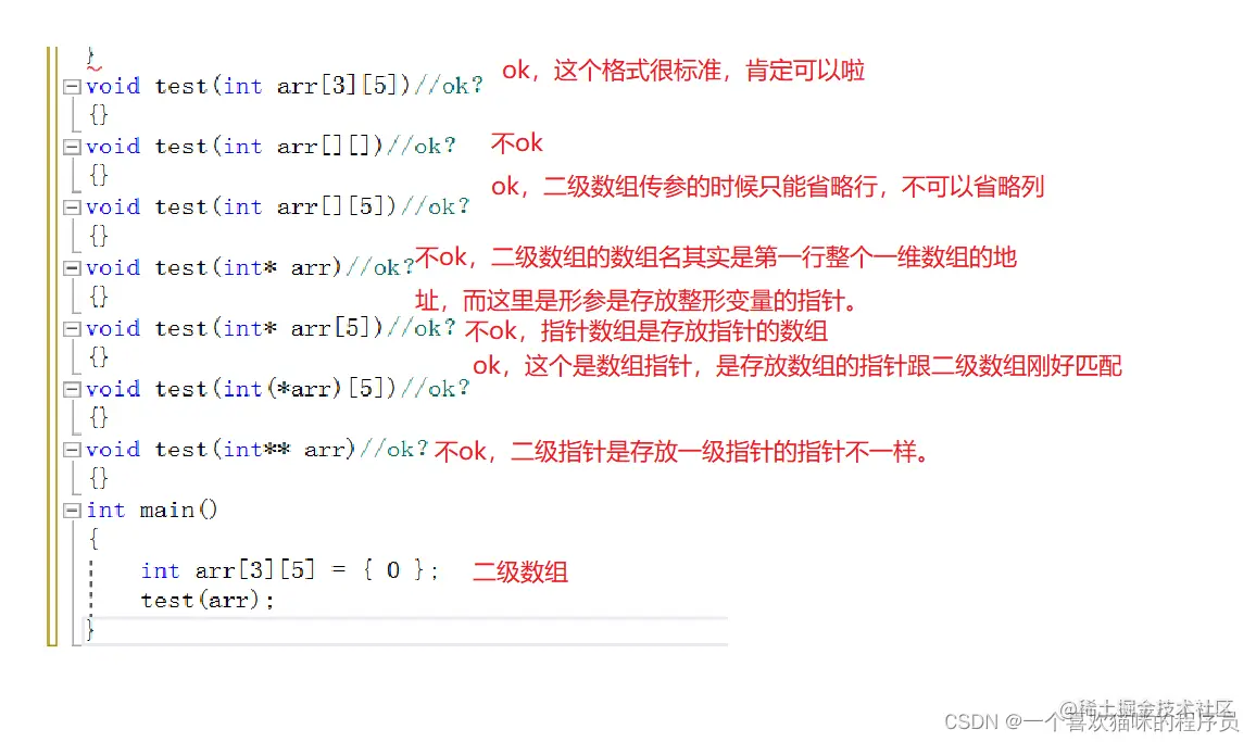 - 二维数组传参: