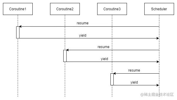 协程可以看成一种特殊的函数,和普通函数不同,协程函数有挂起(yield)和恢复(resume)的能力,即可以中断自己的执行流,并且在合适的时候恢复执行流,这也称为上下文切换的能力。