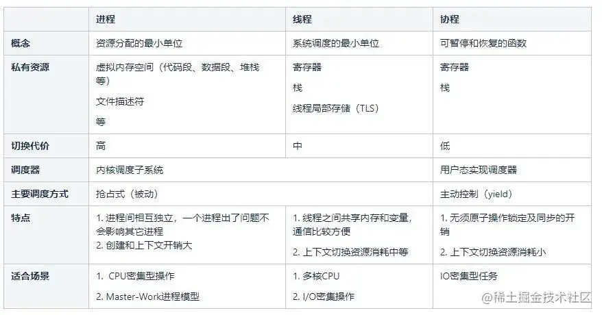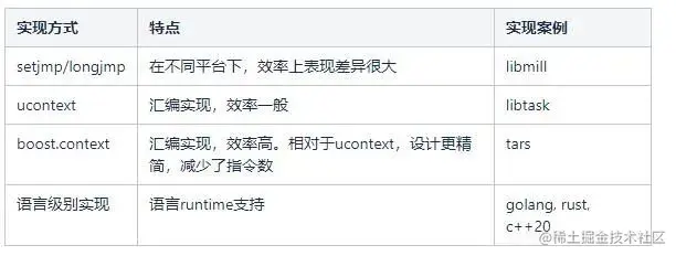 不同点:线程的上下文切换在内核实现,切换的时机由内核调度器控制。协程的上下文切换在用户态实现,切换的时机由调用方自身控制。