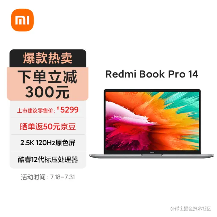 小米 Redmi BookPro14 2022款 2.5K120hz高清屏 高性能轻薄本 笔记本电脑(12代酷睿8核i5-12450H 16G 512G)