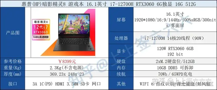 惠普暗影精灵8 16.1 i7-RTX3060【到手价需点击查看】