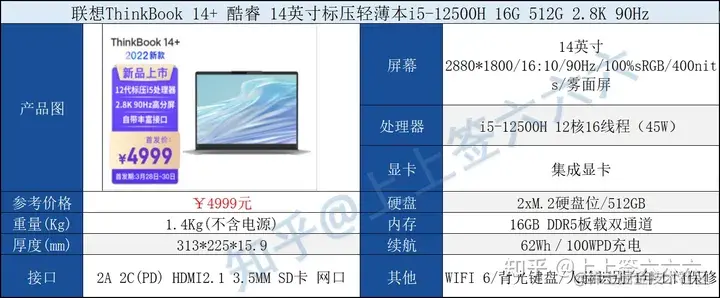 联想ThinkBook 14+ i5-12500H 16G 512G 2.8K 90Hz