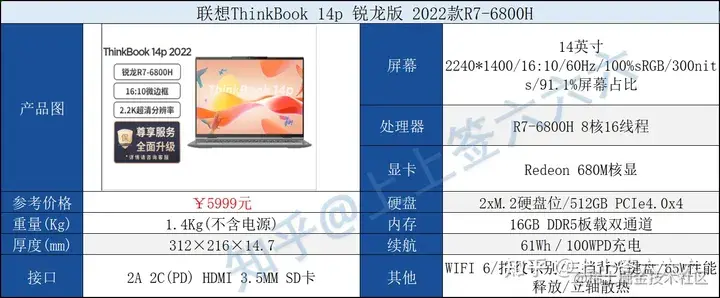 联想ThinkBook 14p 2022款 AMD锐龙标压 6800h